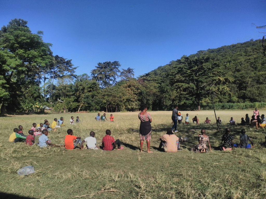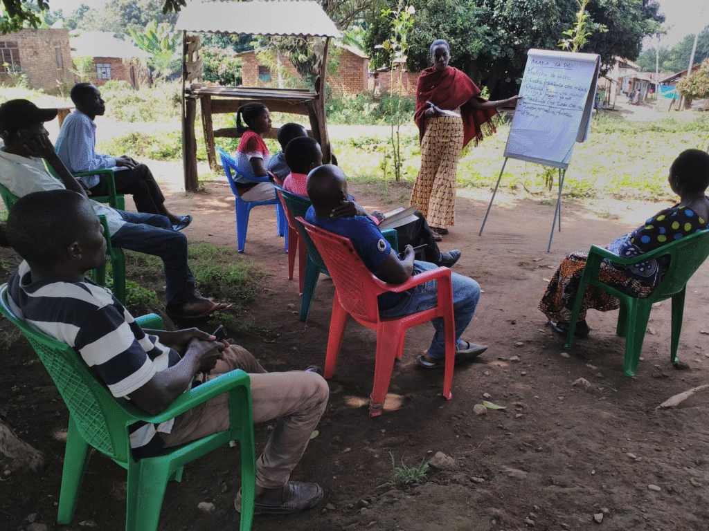 Government Livestock Officer and Africa Bridge staff providing training for dairy cow co-op members.