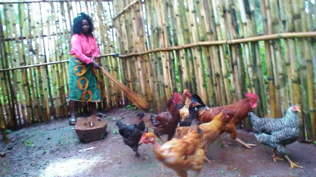Chicken Co-op member on the first day after a shed is built for raising chickens.